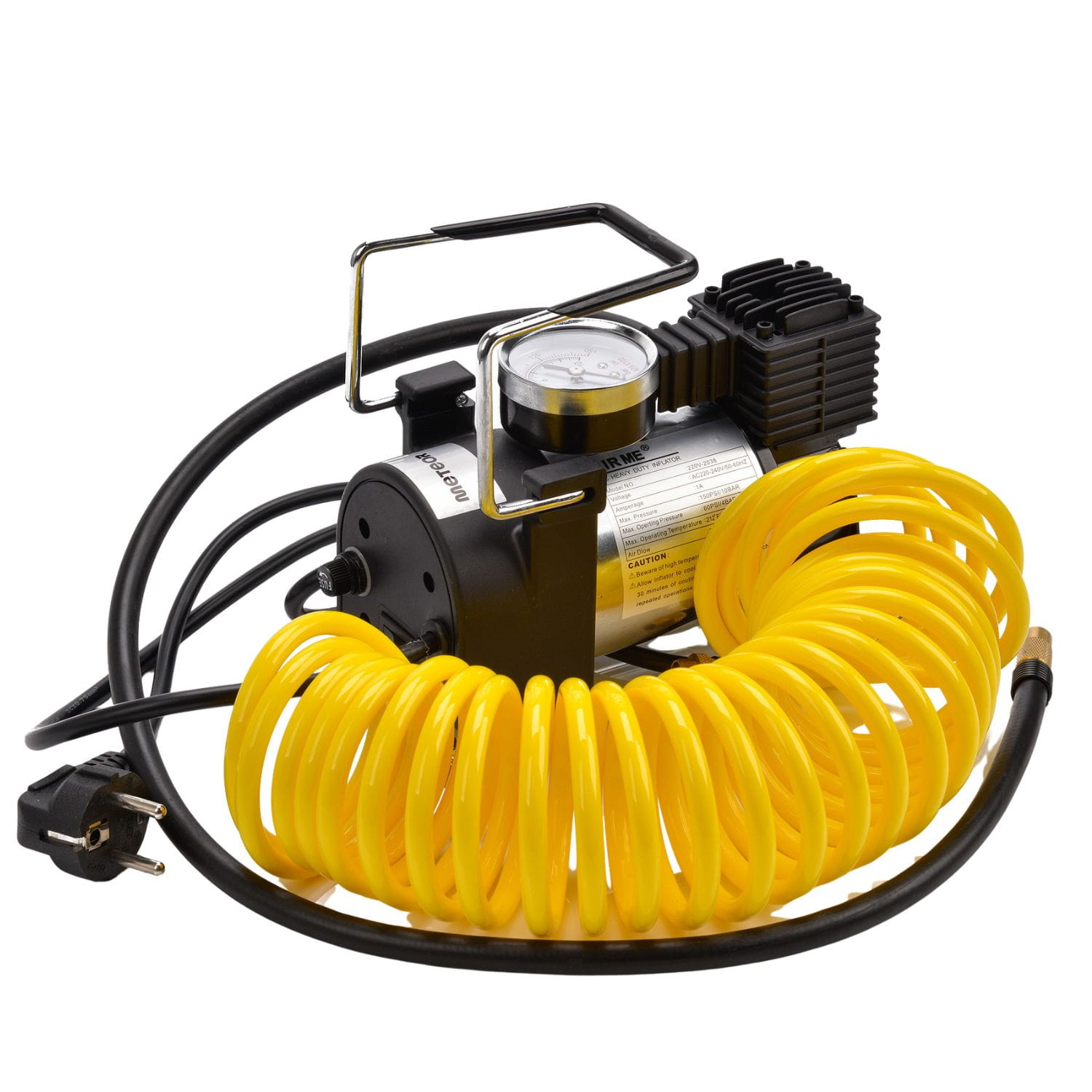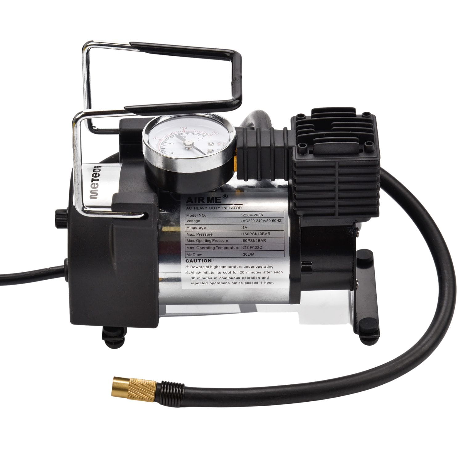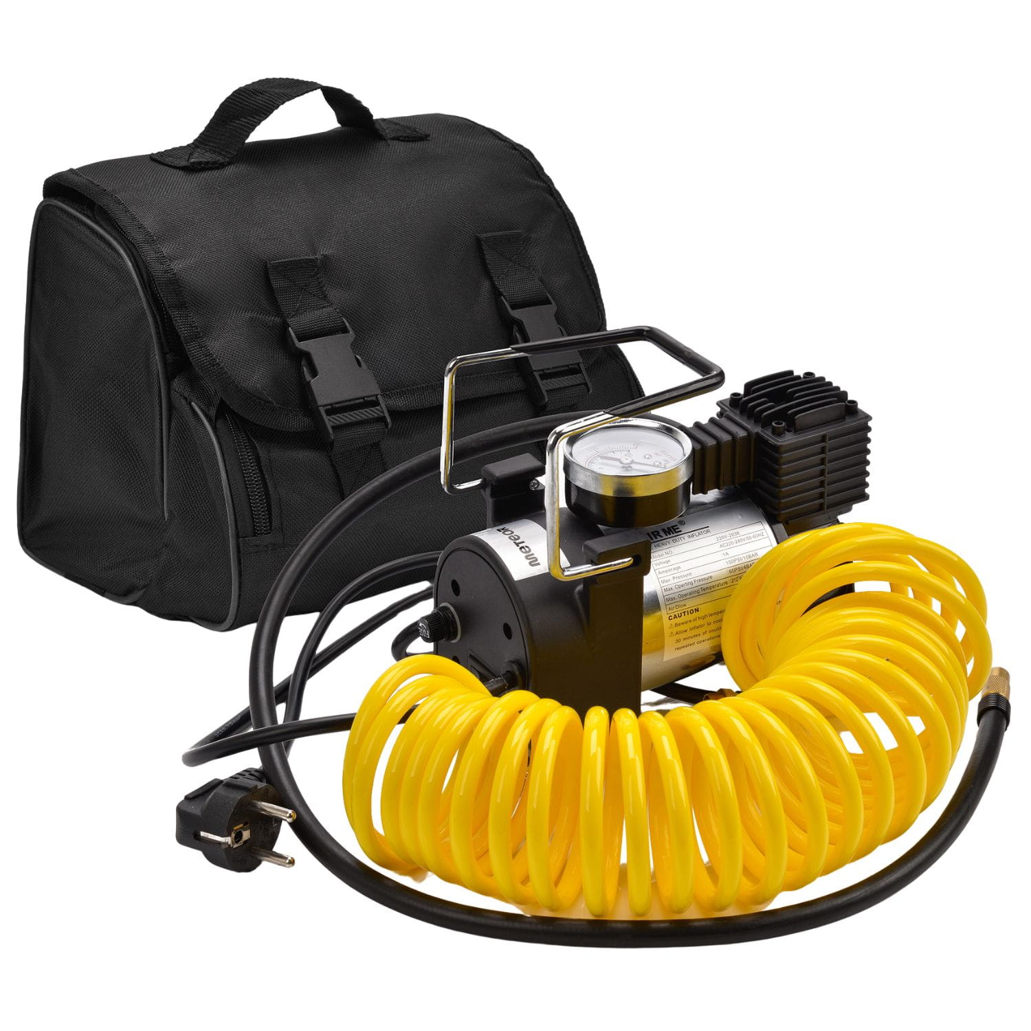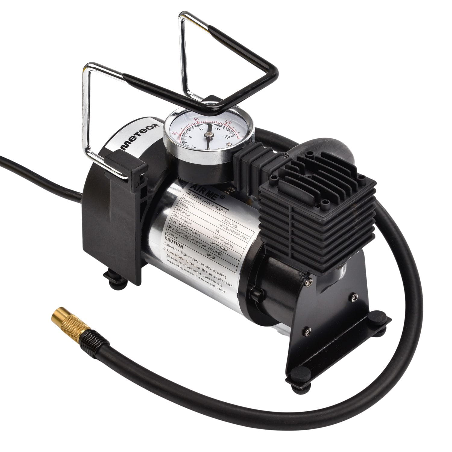 Kompresor Meteor to kompaktowe i wydajne narzędzie dla koszykarzy, dla piłkarzy. Zasilany z sieci 220–240 V, oferuje przepływ powietrza 30 l/min i ciśnienie do 150 PSI/10 BAR, co pozwala szybko napompować piłki. Kompresor do piłek Meteor wyposażony jest w spiralny wąż, wymienne końcówki oraz solidną metalową obudowę z gumowymi nóżkami, które zapewniają stabilność i komfort pracy. Kompresor Meteor doskonale sprawdza się przy pompowaniu piłek do koszykówki, siatkówki oraz piłki ręcznej.